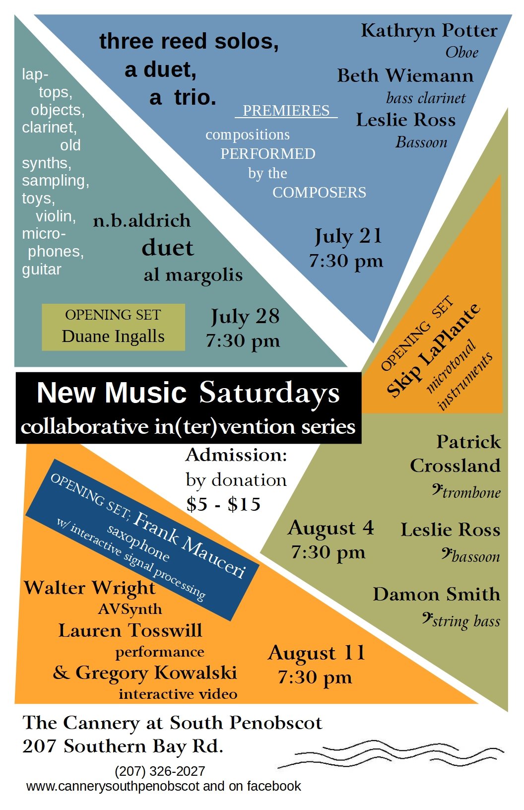 Machias born Duane Ingalls, artistic researcher and sound artist, will intervene throughout the evening with improvised vocals and low-tech devices. |