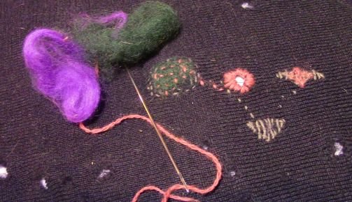 Please bring a household sponge (as large as you can find). Needles and roving and tea will be supplied, however certainly bring along any roving or yarn or wool fabric you might like to use or share.